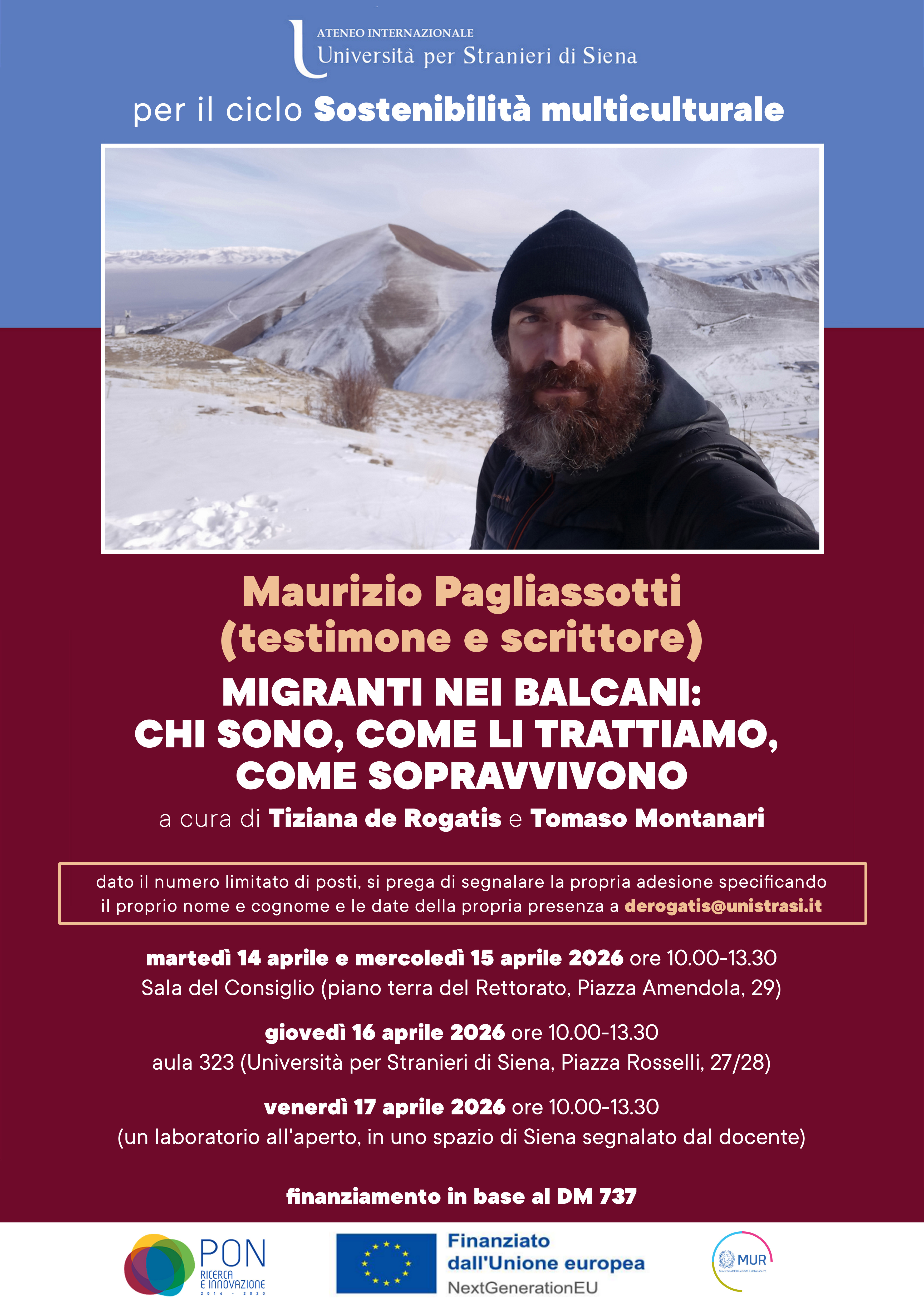 Il seminario prevede quattro incontri (per un totale di 16 ore) con il testimone e scrittore Maurizio Pagliassotti, che ha condiviso concretamente con i migranti la Rotta dei Balcani.