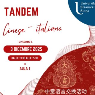 Da Andrea Scibetta (anche per Centro CLASS, Centro CLUSS) La cattedra di cinese di UNISTRASI, in collaborazione con il Centro CLUSS, promuove un incontro in presenza per le attività di tandem linguistico italiano-cinese. L’incontro si terrà...