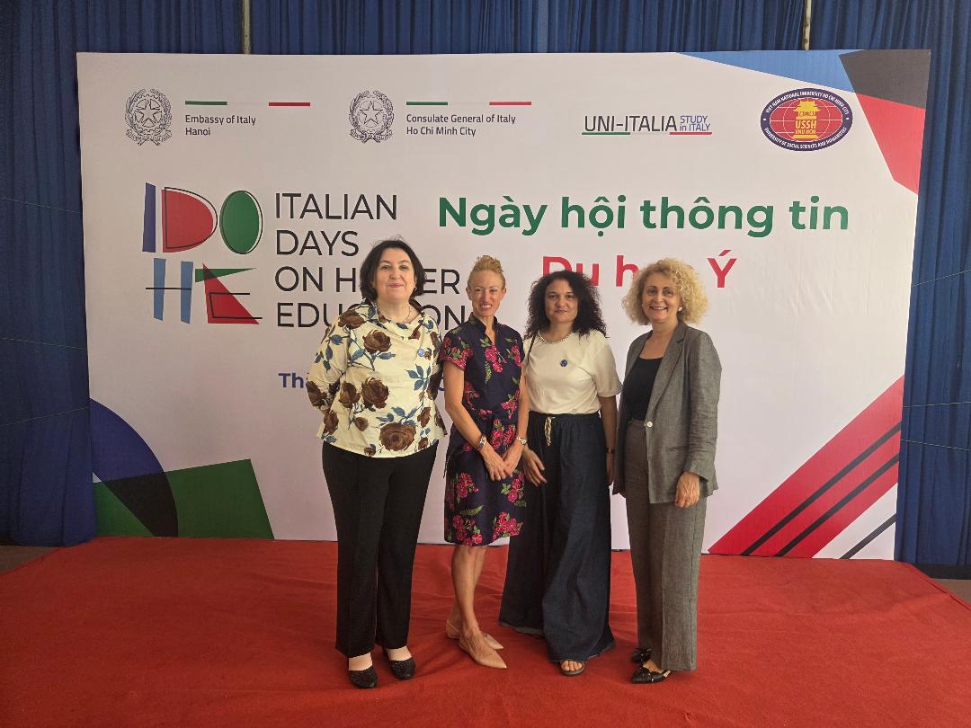 Nell’ambito delle attività del progetto TNE – TRANSIT, e per la promozione di programmi di collaborazione tra Università italiane e vietnamite, all’interno della Settimana della Lingua Italiana nel mondo e della Fiera Idohe organizzata da Uni-Italia ad Hanoi e Ho Chi Minh, la Delegata alle Relazioni Internazionali Carla Bagna e la struttura per l’internazionalizzazione, nella persona della dott.ssa Elisabetta Carli, hanno partecipato, con altre 18 università italiane, nei giorni 13-19 ottobre, a incontri presso il Ministero dell’Educazione Vietnamita, hanno incontrato gli studenti dei dipartimenti di Italiano dell’Università di Hanoi, e svolto attività di networking. Sono stati previsti anche incontri con l’Ambasciata Italiana in Hanoi e il Consolato Italiano ad Ho Chi Minh, l’Addetto Scientifico, i lettori ministeriali e la sede CILS di Hanoi.