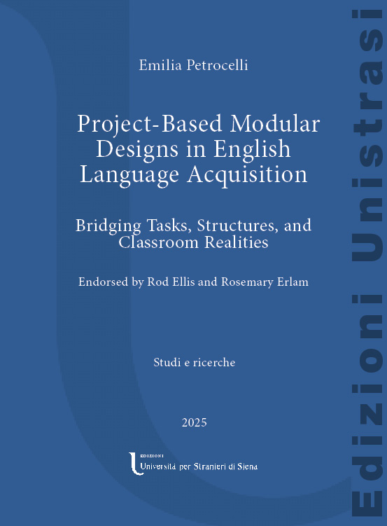 Lo scorso 31 ottobre è stato pubblicato il volume: Emilia Petrocelli, Project-Based Modular Designs in English Language Acquisition. Bridging Tasks, Structures, and Classroom Realities, Edizioni Università per Stranieri di Siena, collana “Studi e ricerche”, ISBN: 978-88-32244-26-7. Il volume è liberamente accessibile all’URL: https://edizioni.unistrasi.it/volume?id_sez=1342.